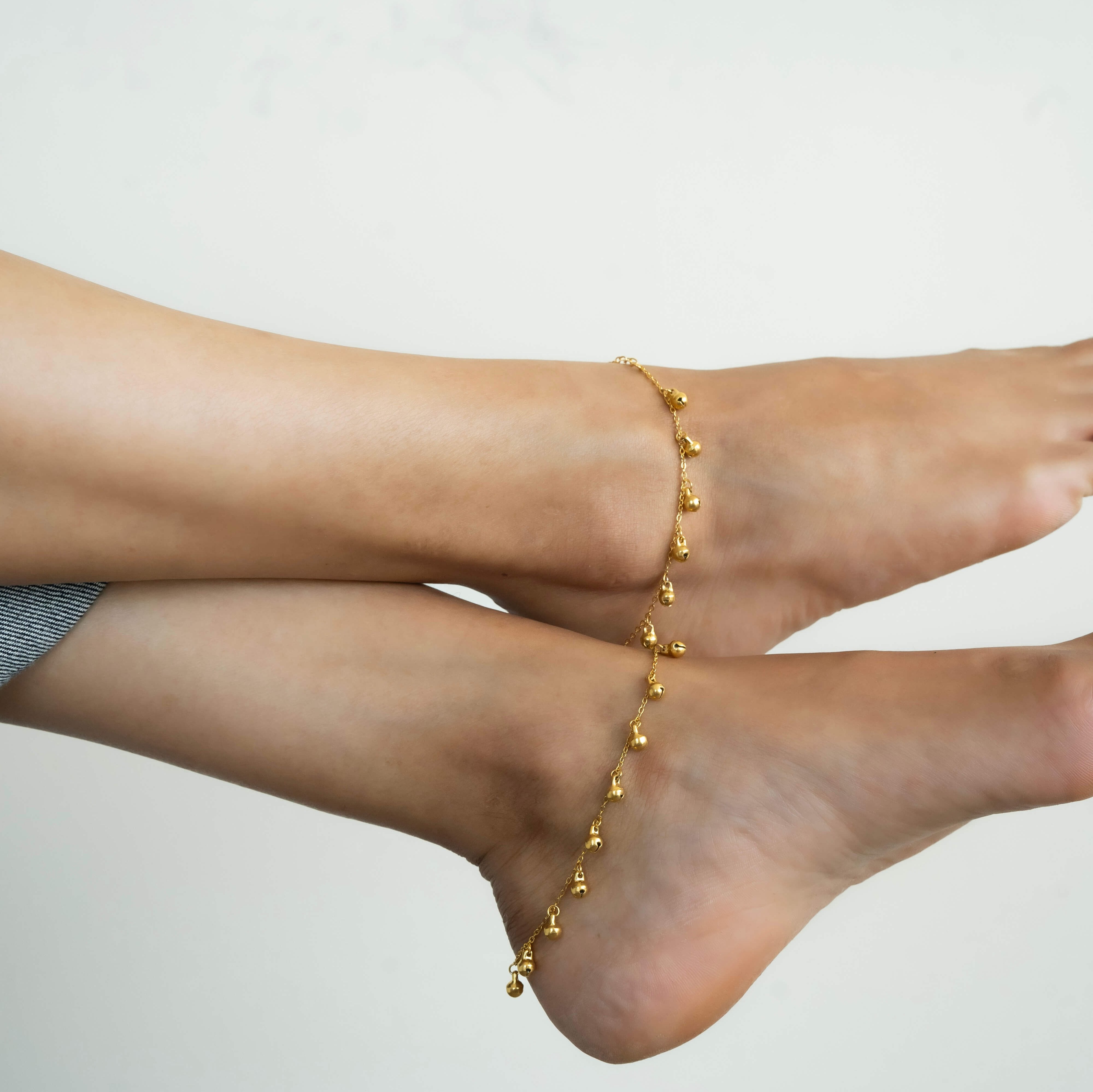 (2 pack) Desi girls only wear anklets on both feet... thats why we only have anklets in pairs of 2. These modern anklets blend tradition & minimalism with tiny bells. Perfect to add a touch of desi elegance to any look.