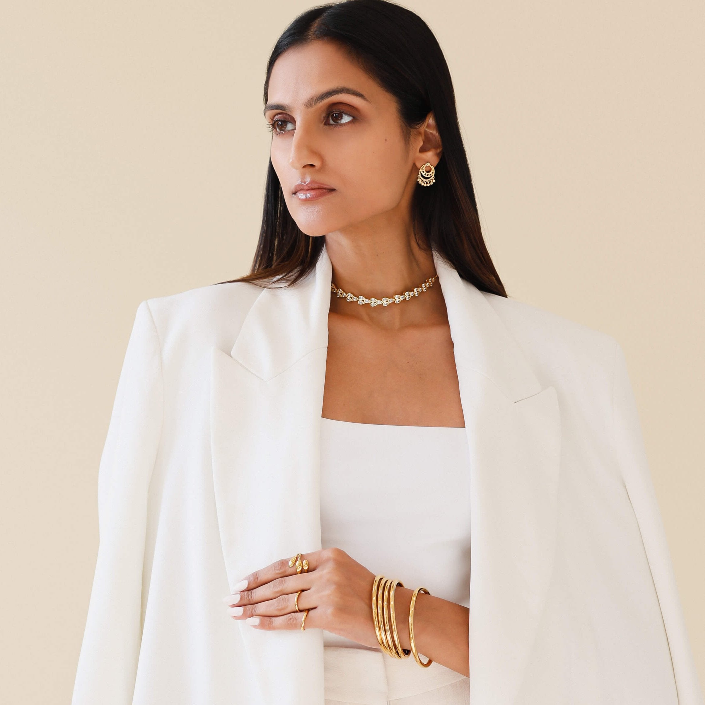 Elevate your everyday jewelry with our minimalist chandbali earrings, inspired by a timeless piece of heritage. Originally worn by royalty in South Asia, chandbali earrings feature crescent shapes to symbolize elegance of the moon.