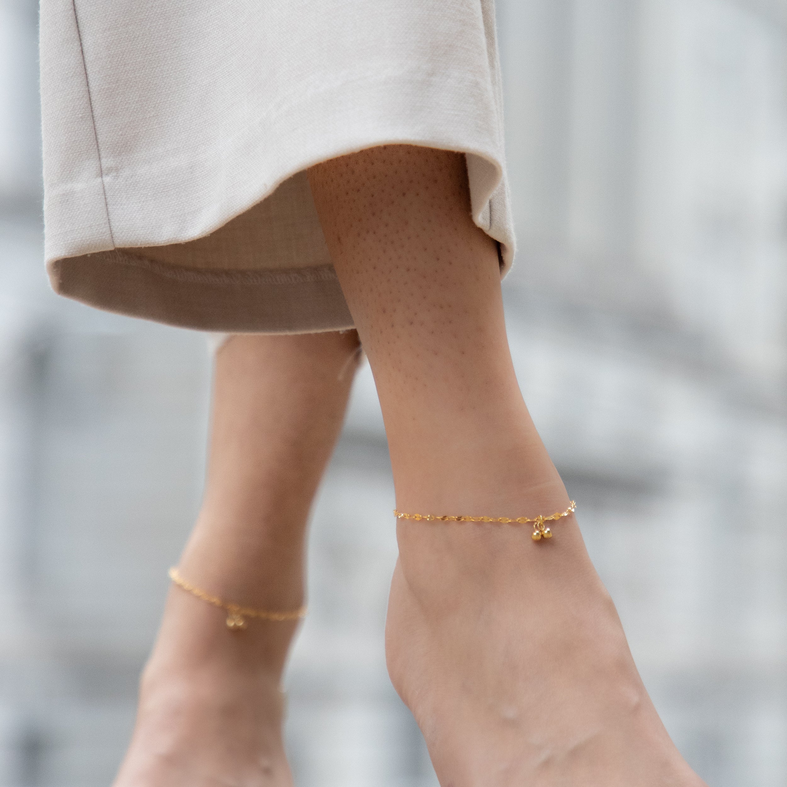 Traditional ghungroo anklets date back centuries with their beautiful craftsmanship, and framework for Indian classical dancing. The Moksha anklet is our minimalist take on the classics, and although they wont make any beautiful rhythmic sounds, these dainty chains will add the perfect desi touch to any outfit!