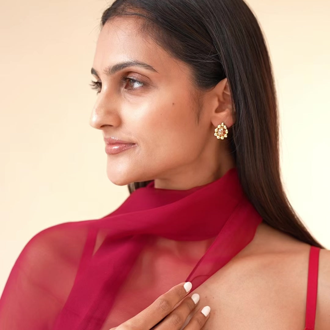 Inspired by traditional Meenakari craftsmanship, the Meena Bloom Earrings are delicately hand-painted with floral enamel detailing. Lightweight and easy to wear, they add a soft touch of desi chic to any look. Each pair is handcrafted with care and made for everyday wear. Pair with the Meena Bloom Ring for a matching set!
