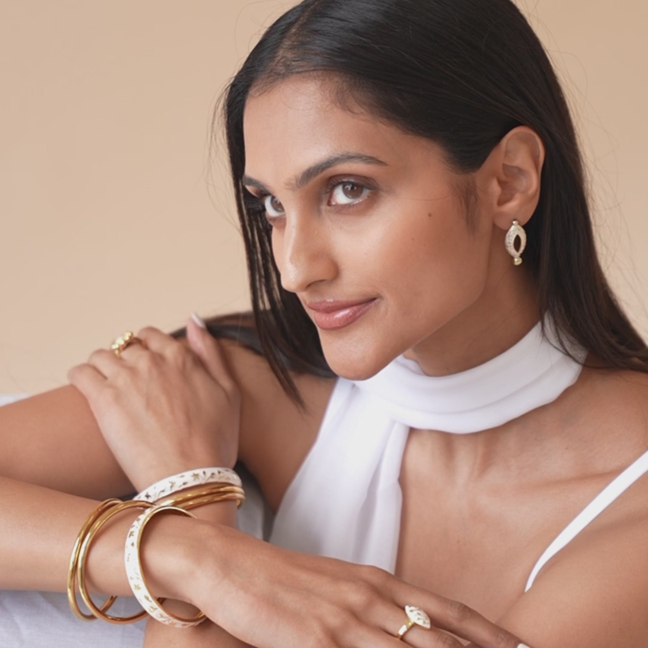 Inspired by traditional Meenakari craftsmanship, the Meena Marquise Earrings feature a hand-painted enamel design framed in an elegant marquise silhouette. Lightweight yet eye-catching, they’re crafted to add touch of desi to your everyday look. Wear them solo or pair with the Meena Marquise Ring for a matching moment!
