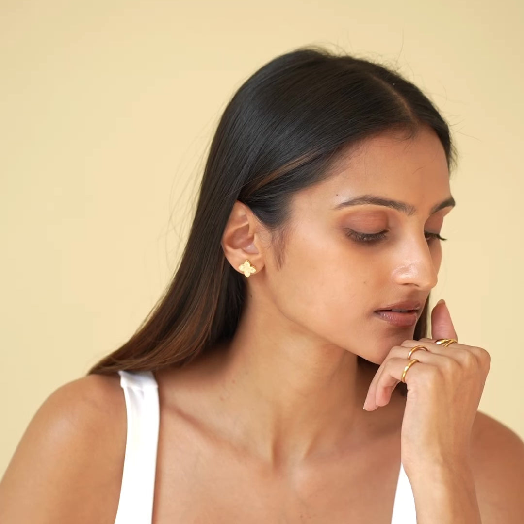 Our Amira stud earrings are sure to be the everyday earrings that will have everyone asking "where are those from!?" With their minimal desi touch & sparkle, these earrings are sure to be a hit from day to night.