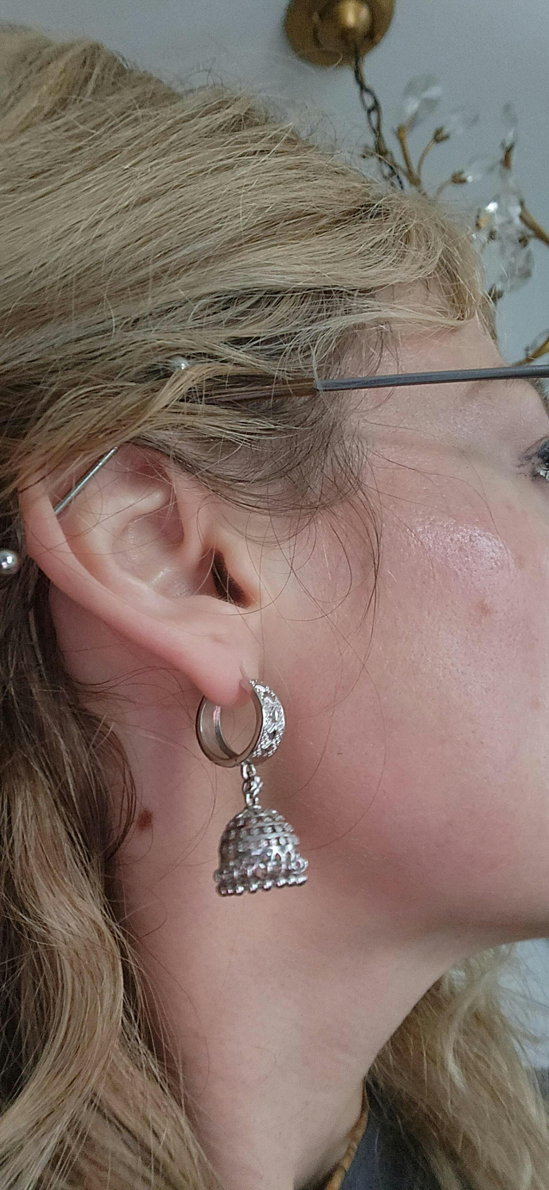 Our Jhumkas are made to be comfortable & perfect for everyday wear, with a thin post & hinge mechanism to easily take on and off. They add the perfect desi touch to glam-up any outfit: both Desi & Western!